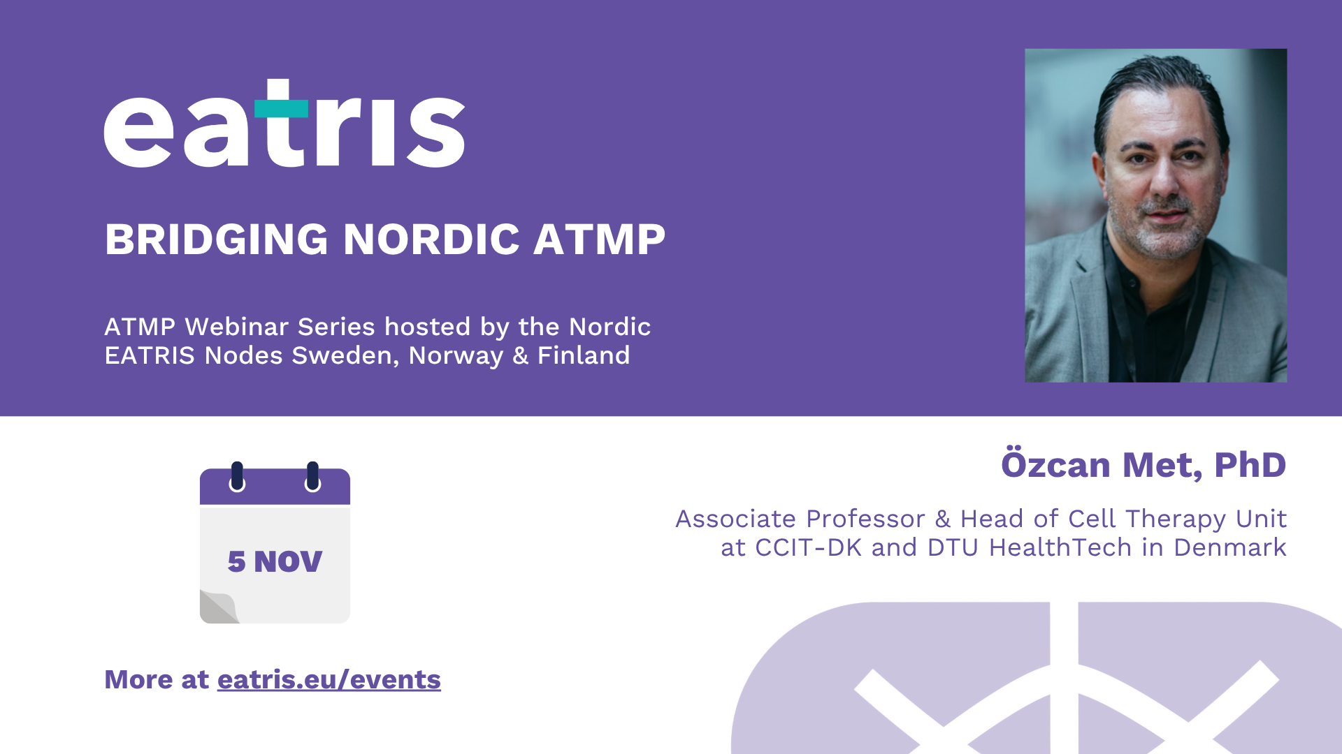 Please save the date for Bridging Nordic ATMP, the new season of ATMP Webinar Series hosted by the Nordic EATRIS Nodes (Sweden, Norway and Finland). This season of the series will take place online 12.00-13.00 CEST, once a month with a lecture by an expert in the Advanced Therapy Medicinal Products (ATMPs) field. The next edition will feature the following speaker: